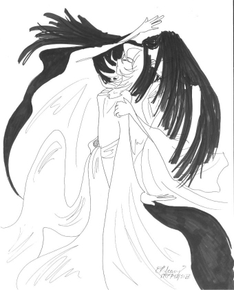 This was actually the first picture she drew for me...some insane early hour of the morning when we ALL were sitting in the middle of her house watching about 18 straight hours of anime...I think it took her all of 10 minutes to sketch and ink... |